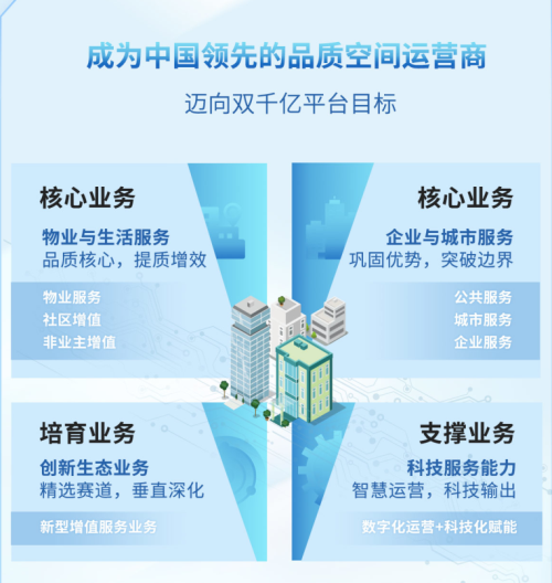 未来,集团将重点关注家政、幼托、养老等国家政策鼓励、有庞大潜在需求的“物业服务+生活服务”产业,以专业化产品运营思维,重点输出服务价值,打造创新增值服务的专业服务能力。同时,集团将在商企服务需求端深挖业务潜力,瞄准团膳、通勤、个性化企业服务等高关联性增值服务领域,不断延伸及突破服务边界,尽早补强业务专业能力。